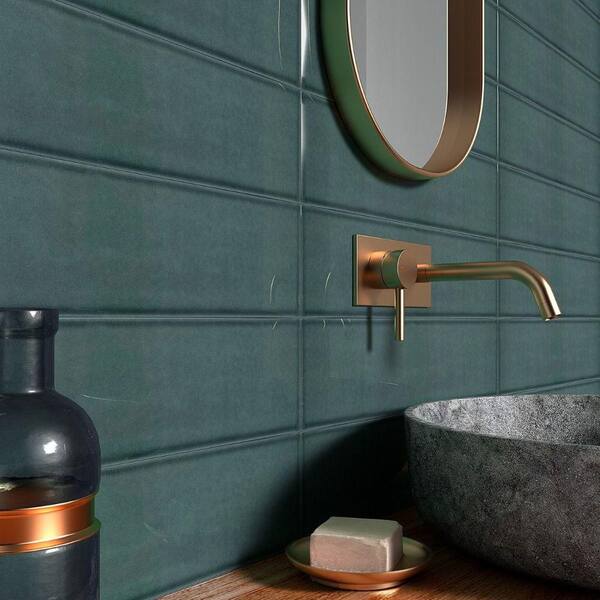 Colorwave Emerald Green 4.43 in. x 0.34 in. Polished Crackled Ceramic Subway Wall Tile Sample