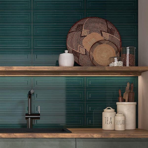 Colorwave Framed Emerald Green 4.43 in. x 0.34 in. Polished Crackled Ceramic Wall Tile Sample