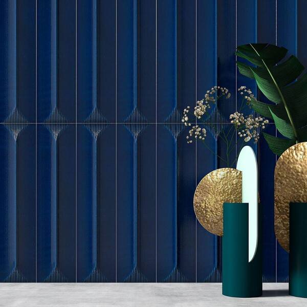 Colorwave Inflex Nautical Blue 4.43 in. x 0.34 in. Polished Crackled Ceramic Wall Tile Sample