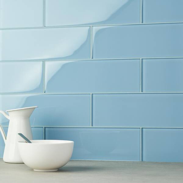 Contempo Blue Gray 4 in. x .31 in. Polished Glass Mosaic Floor and Wall Tile Sample