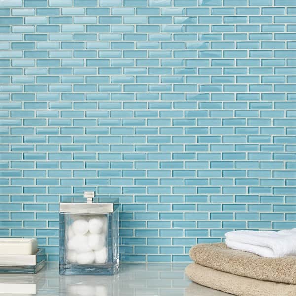Contempo Turquoise Brick Pattern 12 in. x 12 in. x 8 mm Glass Mosaic Floor and Wall Tile