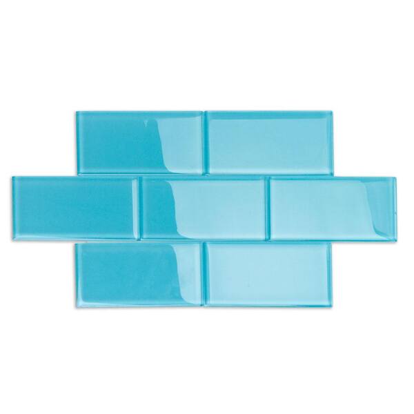 Contempo Turquoise 3 in. x 6 in. x 8 mm Polished Glass Subway Floor and Wall Tile (32 pieces 4 sq.ft./Box)