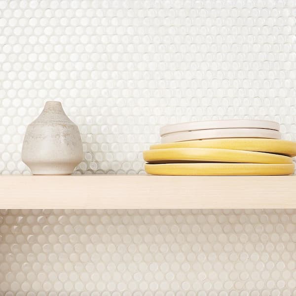 Contempo White Circles 4 in. x 0.31 in. Polished and Frosted Glass Mosaic Tile Sample