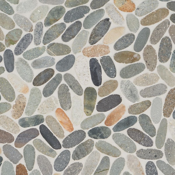 Countryside Sliced Flat Oval 11.81 in. x 11.81 in. Dark Blend Floor and Wall Mosaic (0.97 sq. ft. / sheet)