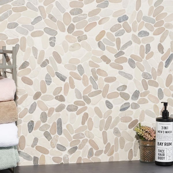 Countryside Sliced Flat Oval 11.81 in. x 11.81 in. Light Blend Floor and Wall Mosaic (0.97 sq. ft. / sheet)