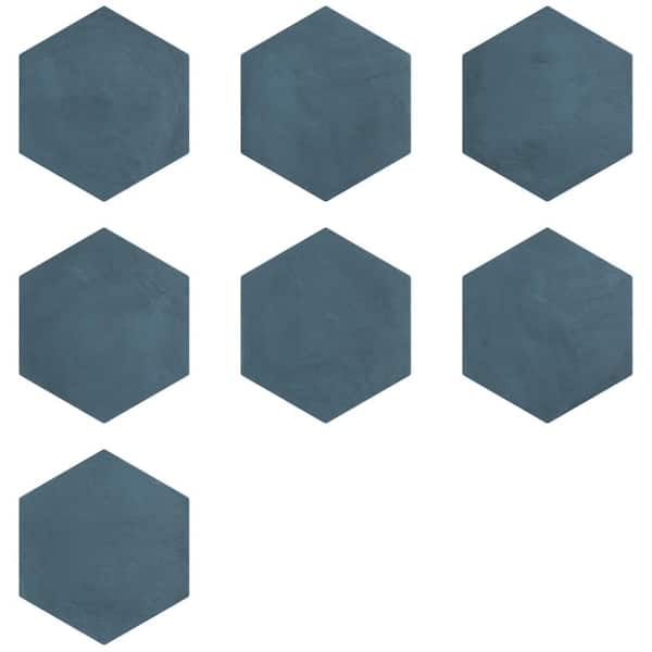 Dash Blue Ocean 8.5 in. x 0.35 in. Matte Hexagon Porcelain Floor and Wall Tile Sample