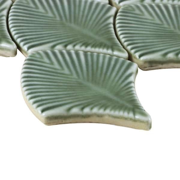 Delphi Capri Green 4.3 in. x 0.45 in. Polished Glass Fishscale Mosaic Wall Tile Sample
