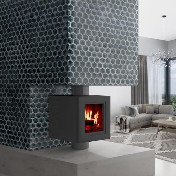 Delphi Midnight Blue 10.82 in. x 12.59 in. Polished Glass Hexagon Mosaic Wall Tile (0.94 Sq. Ft. Each)