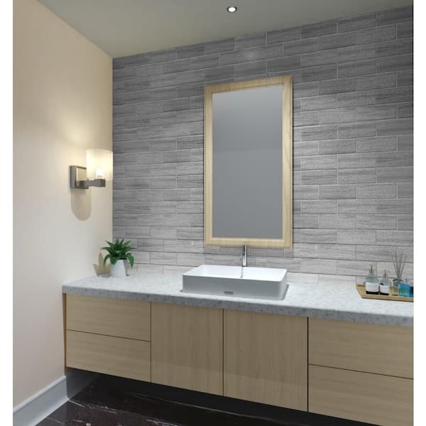 Demure Silver 4.37 in. x 0.31 in. Polished Glass Wall Tile Sample