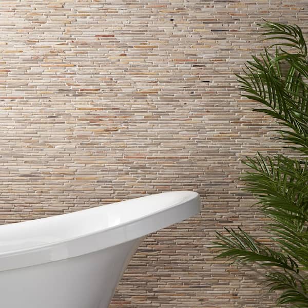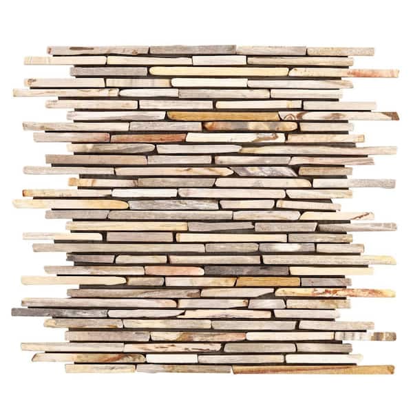 Dixiewood Cracked Joint Brown 4 in. x 0.35 in. Marble Floor and Wall Mosaic Tile Sample