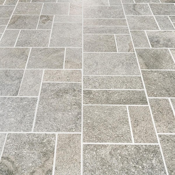 Dominion Slate Gray 4 in. x 0.35 in. Matte Limestone Look Porcelain Floor and Wall Mosaic Tile Sample