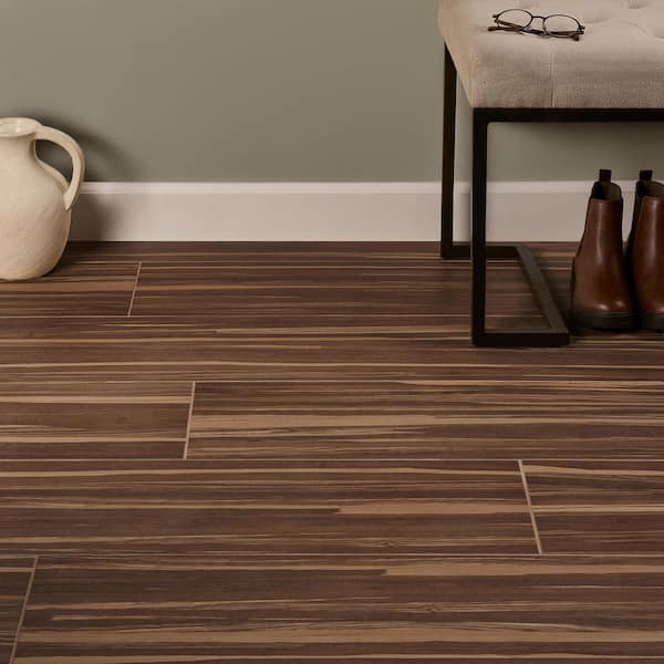Elm Walnut Brown 8.66 in. x 0.27 in. Wood Look Matte Porcelain Floor and Wall Tile Sample