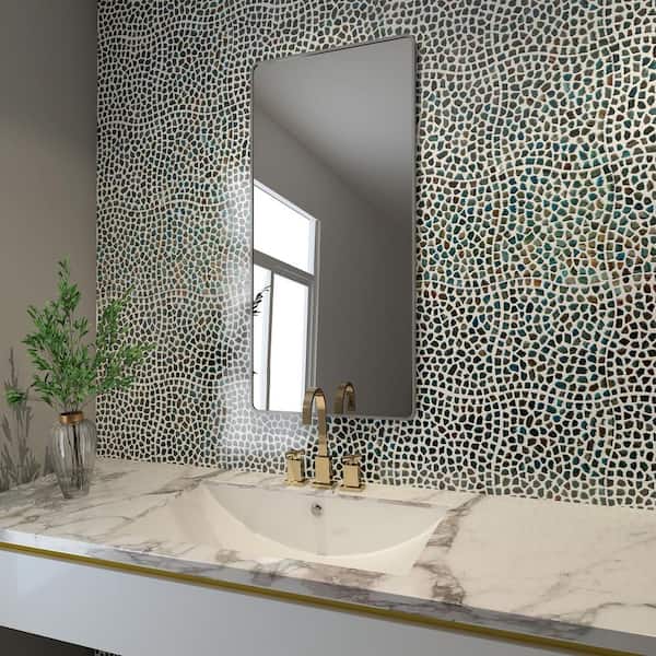 Fargin Pebble Tropical Lagoon 4.32 in. x 0.24 in. Polished Glass Wall Mosaic Tile Sample