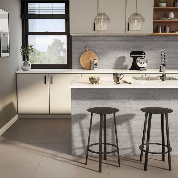 Fusion Brick Smoke Gray 2.48 in. x 0.47 in. Natural Terrazzo Subway Wall Tile Sample