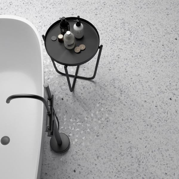 Fusion Hex Gray Terrazzo 4 in. x 0.34 in. Matte Porcelain Tile Sample
