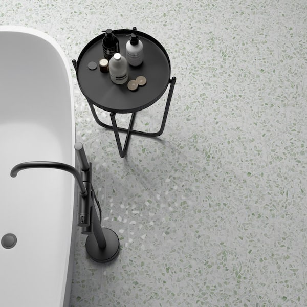 Fusion Hex Green Terrazzo 4 in. x 0.34 in. Matte Porcelain Tile Sample