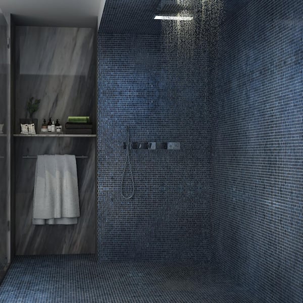 Glimmer Midnight Blue 11.61 in. x 11.73 in. Polished Glass Wall Mosaic Tile (0.94 sq. ft./Each)