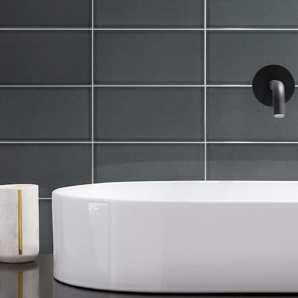 Gondola Ash Gray 3.93 in. x 0.28 in. Polished Ceramic Wall Tile Sample