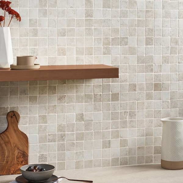 • Made in Italy, travertine stone look matte porcelain mosaic tile