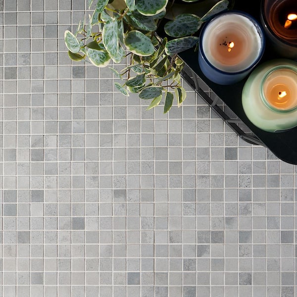 Hempstead Silver 4 in. x 0.39 in. Matte Porcelain Mosaic Tile Sample