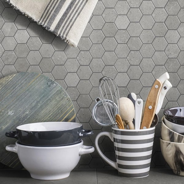 Iris Hex Fumo 4 in. x 0.41 in. Matte Porcelain Floor and Wall Mosaic Tile Sample