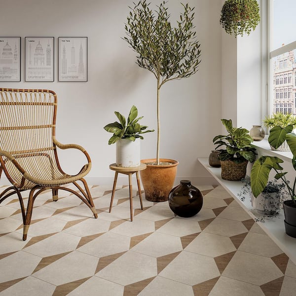 Comes in a deco, mixed wood, concrete or traditional cement tile