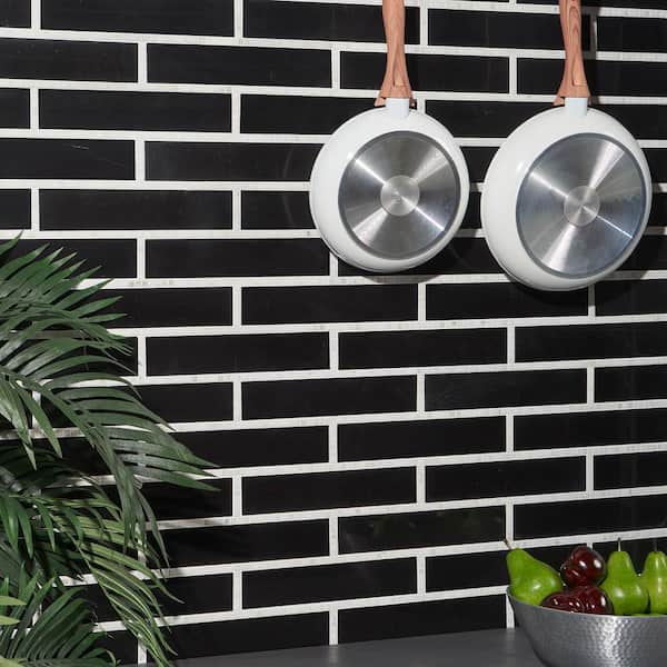 Krista Watterworth Westgate Floral Black 4 in. x 0.39 in. Polished Marble Floor and Wall Mosaic Tile Sample