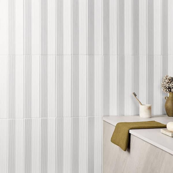 Level Concave White 4 in. x 0.39 in. Matte Ceramic Wall Tile Sample