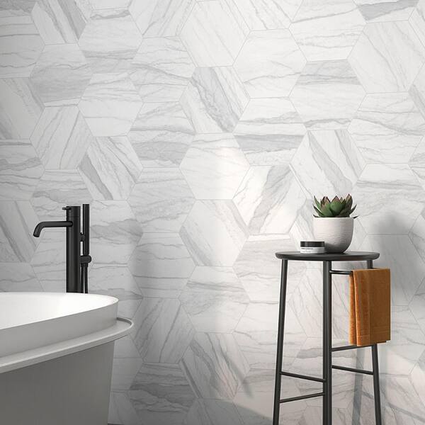 Macauba Hex Gray 4 in. x 0.43 in. Matte Porcelain Floor and Wall Tile Sample