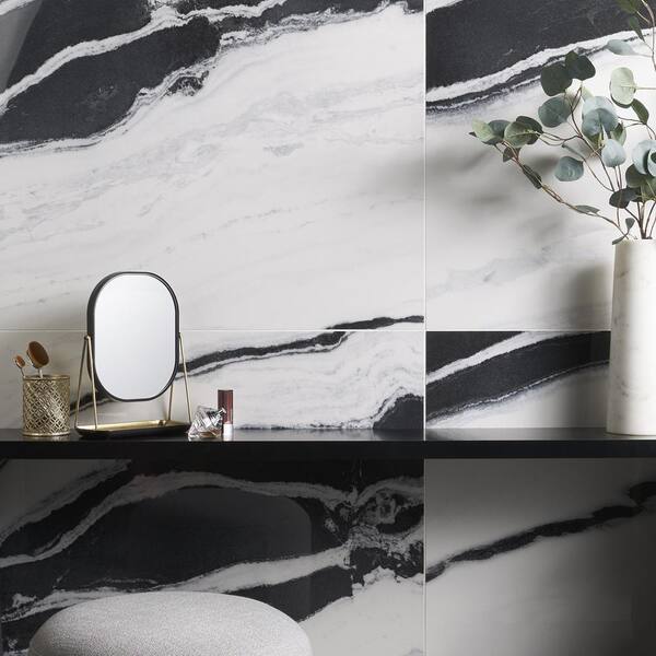 Magnus Wave 23.62 in. x 47.24 in. Polished Porcelain Marble Look Floor and Wall Tile (15.49 sq. ft./Case)