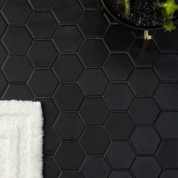 Maine Black 3 in. x 0.39 in. Hexagon Matte Ceramic Mosaic Floor and Wall Tile Sample