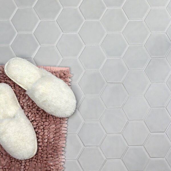 Maine Cement Gray 3 in. x 0.39 in. Hexagon Matte Ceramic Mosaic Floor and Wall Tile Sample