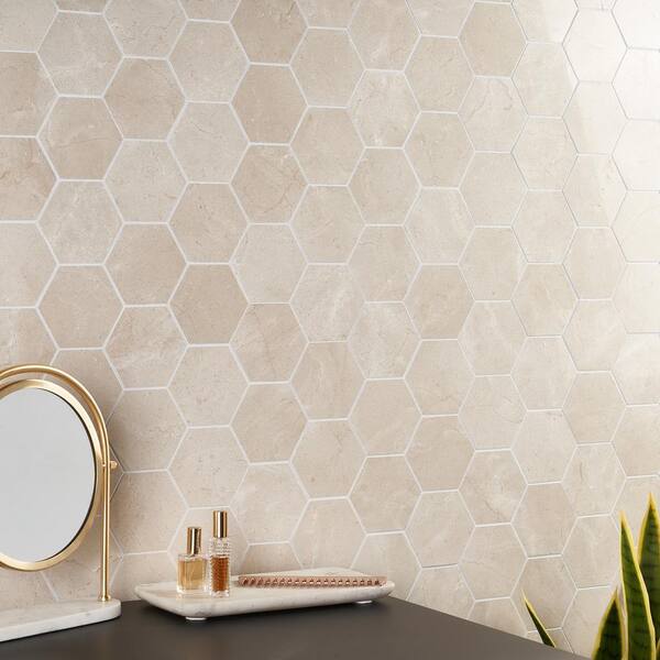 Marfil Crema 4 in. x 0.39 in. Marble Mosaic Tile Sample