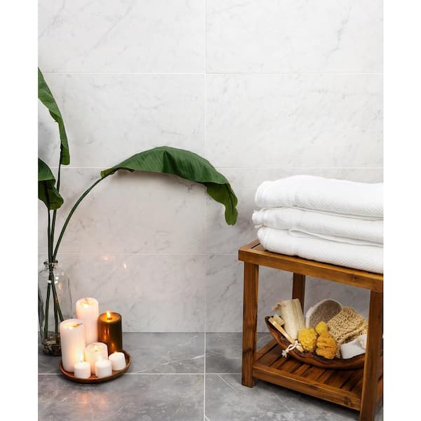 Marmo Bianco 4 in. x 0.39 in. Polished Marble Look Porcelain Tile Sample