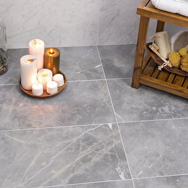 Marmo Gray 4 in. x 0.39 in. Matte Marble Look Porcelain Tile Sample