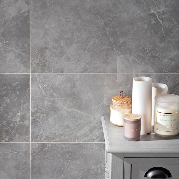 Marmo Gray 4 in. x 0.39 in. Polished Marble Look Porcelain Tile Sample