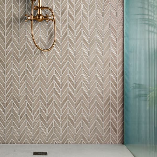 Medley Chevron Warm Gray 4 in. x 0.35 in. Glossy Ceramic Mosaic Wall Tile Sample