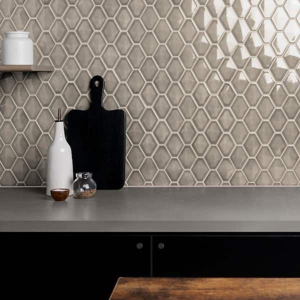 Medley Diamond Warm Gray 10.39 in. x 12.55 in. Glossy Ceramic Mosaic Wall Tile (0.9 sq. ft./Each)
