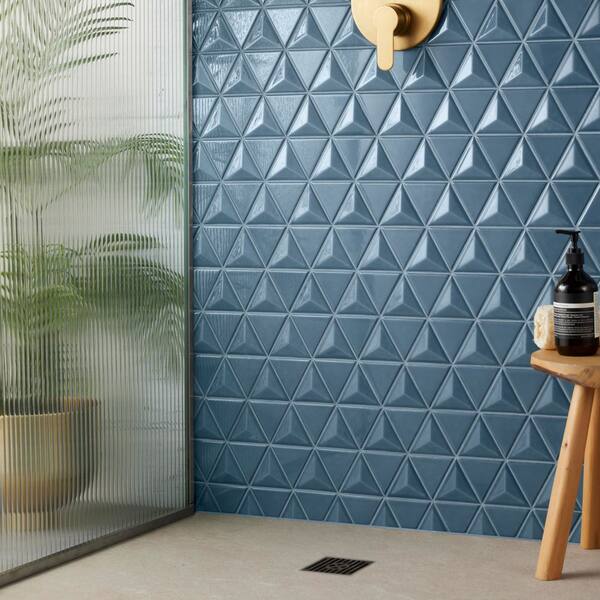 • Glossy 3D triangular shaped mosaic adds depth to any room