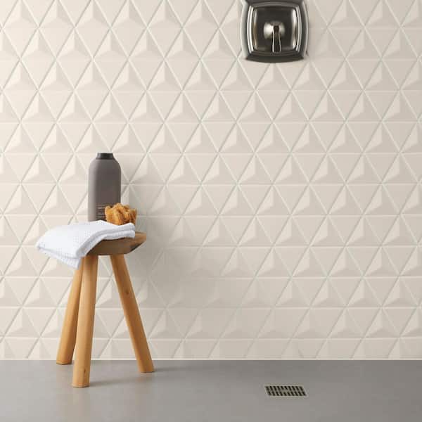 • Glossy 3D triangular shaped mosaic adds depth to any room