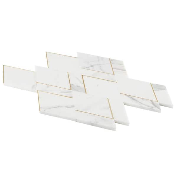 Mehko Calacatta 4 in. x 0.39 in. Polished Marble and Brass Wall Tile Sample