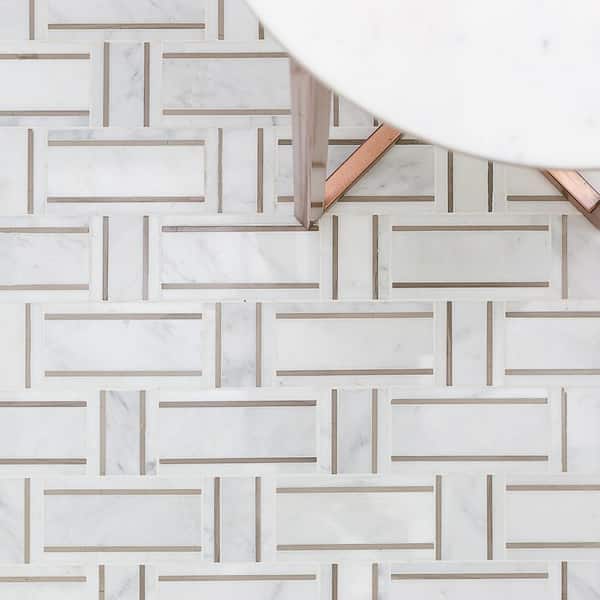 Mingle Asian Statuary and Athens Gray 4 in. x 0.39 in. Polished Marble Floor and Wall Mosaic Tile Sample