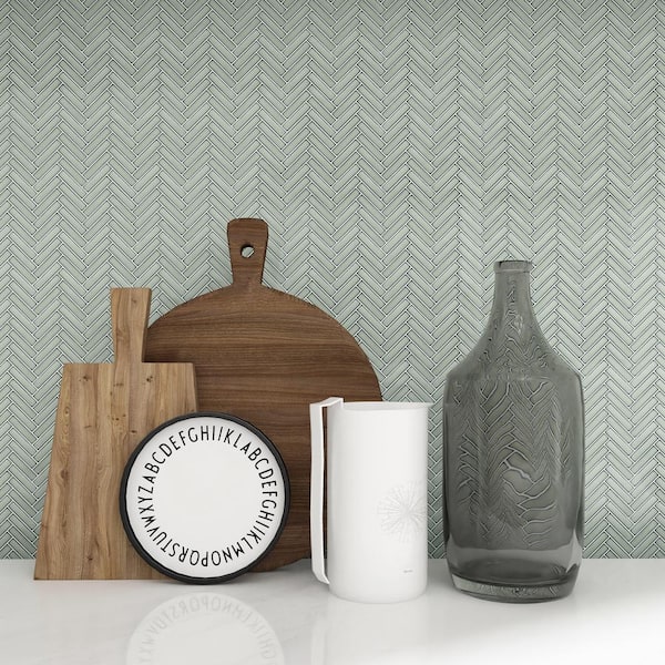 Motif Herringbone Mint Green 2.78 in. x 0.25 in. Glossy Porcelain Mosaic Floor and Wall Tile Sample