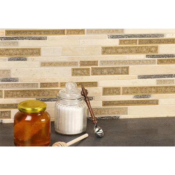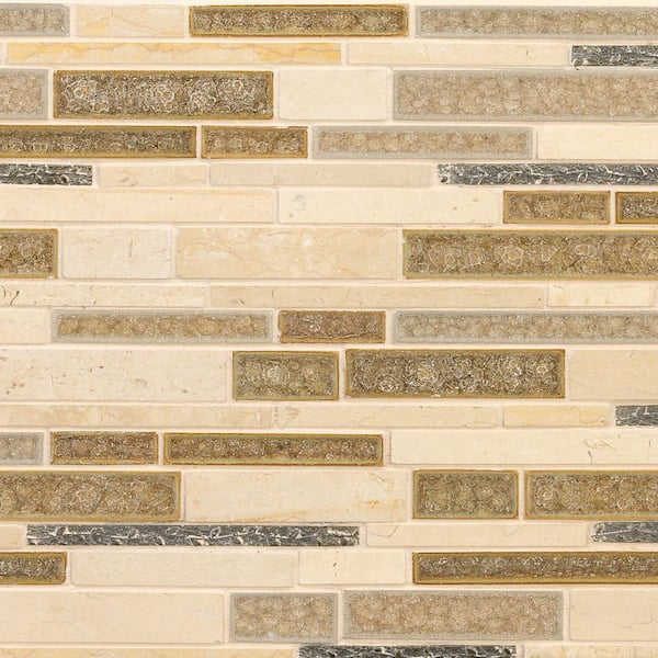 Olive Branch Crema Marfil 11-3/4 in. x 11-3/4 in. Glass and Stone Mosaic Tile