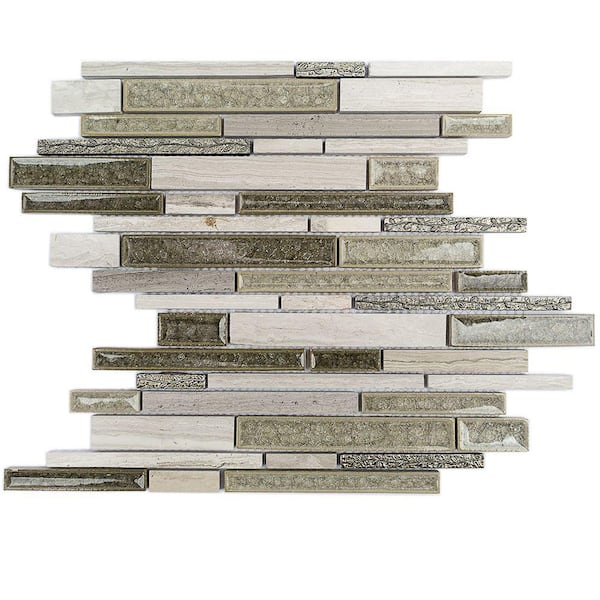 Olive Branch Wooden Beige Glass and Stone Mosaic Tile - 3 in. x 6 in. Tile Sample