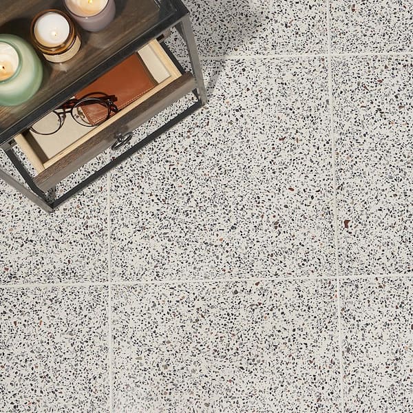Raleigh Tan Square 8 in. x 0.79 in. Polished Terrazzo Cement Tile Sample