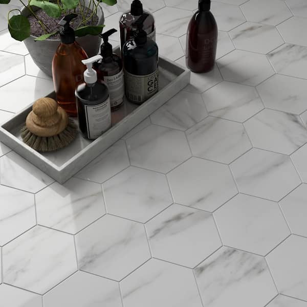 Santorini Statuario White 5.9 in. x 0.35 in. Polished Porcelain Floor and Wall Tile Sample