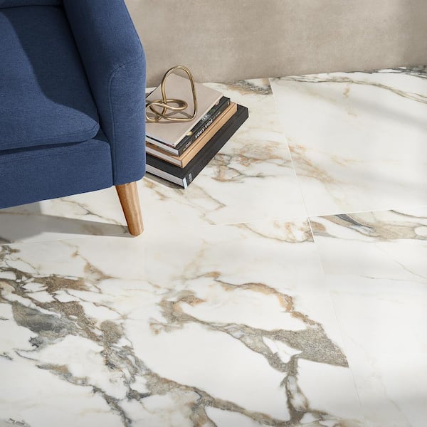 Saroshi Calacatta Rustico 4 in. x 0.31 in. Polished Marble Look Porcelain Floor and Wall Tile Sample