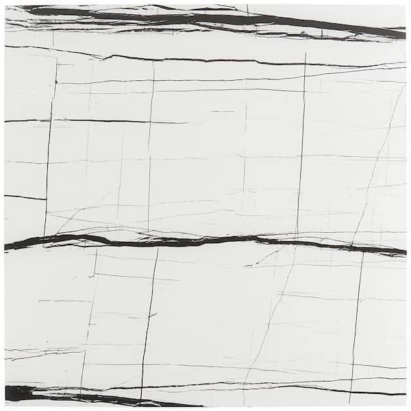 Selene White Noir 4 in. x 8 in. Polished Porcelain Tile Sample
