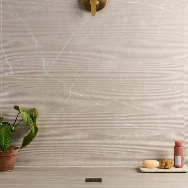 Signet Vibe Crema Beige 8 in. x 0.35 in. Textured Marble Look Matte Porcelain Wall Tile Sample